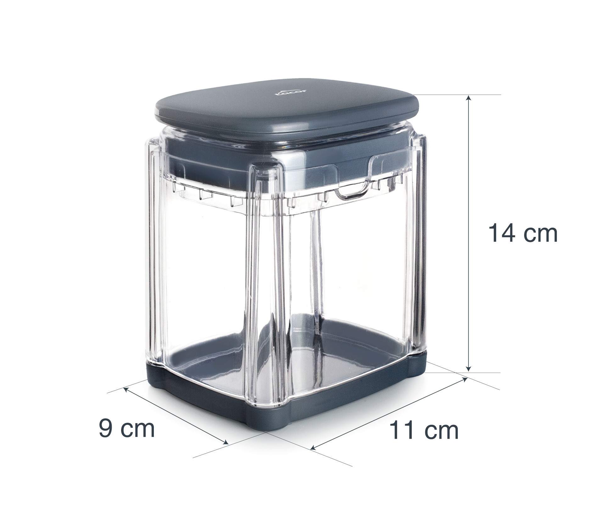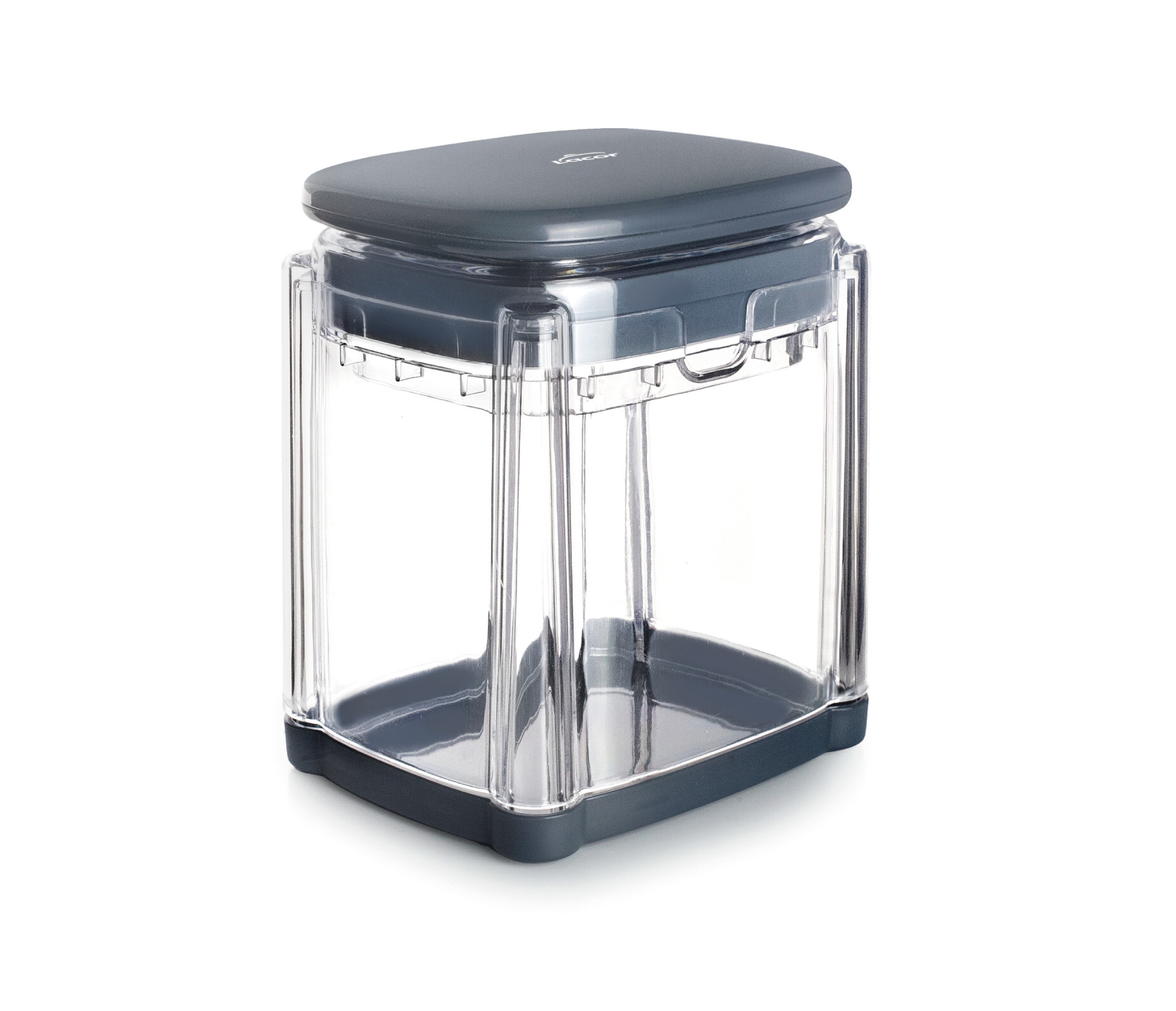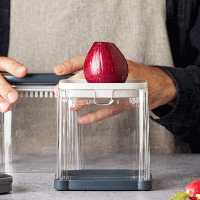 • Récipient transparent qui recueille directement les aliments coupés pour plus de propreté et d'ordre.