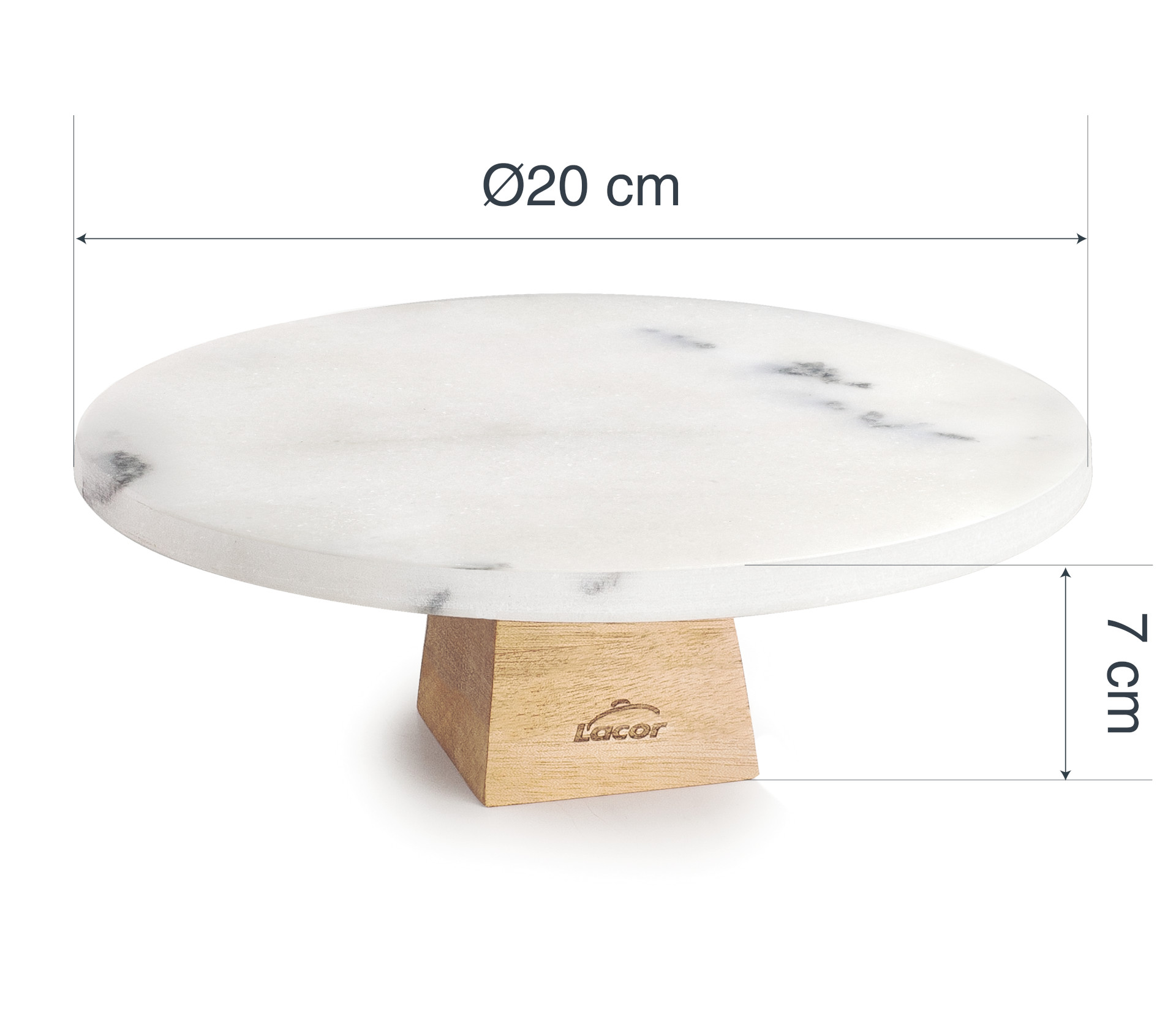 • Support à gâteaux en marbre blanc avec base en bois d'acacia.