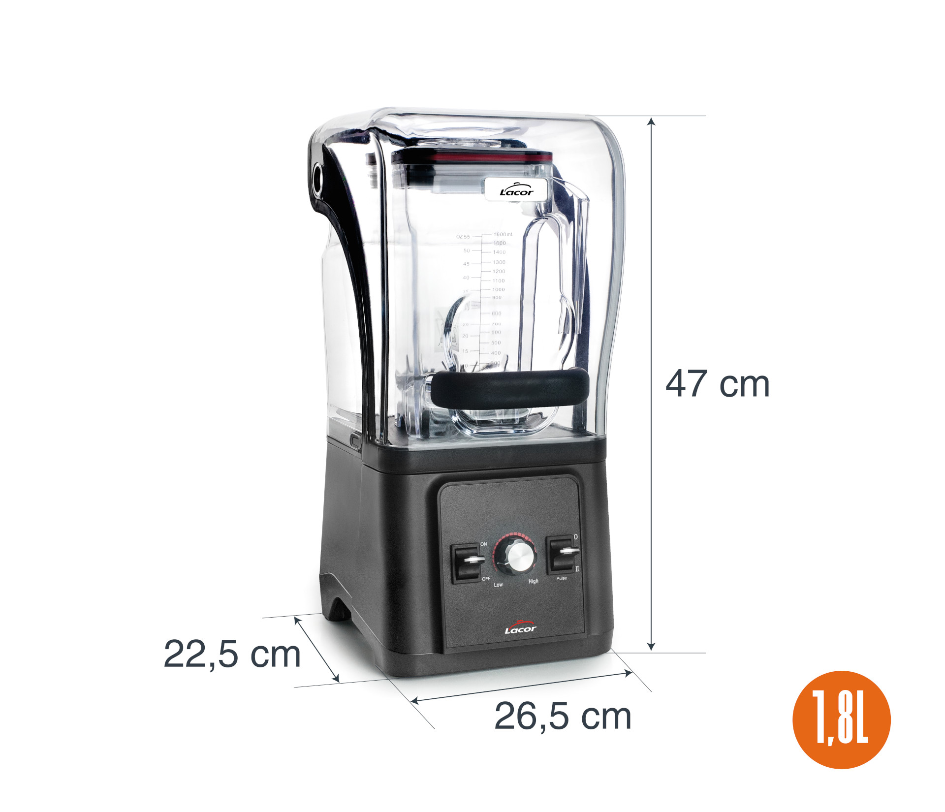 • Bol en Tritan, sans BPA, grande capacité (1,8 L) et haute résistance, avec couvercle hermétique, double échelle de mesure (ml/oz) et bouchon central pour ajouter des ingrédients pendant le mélange.