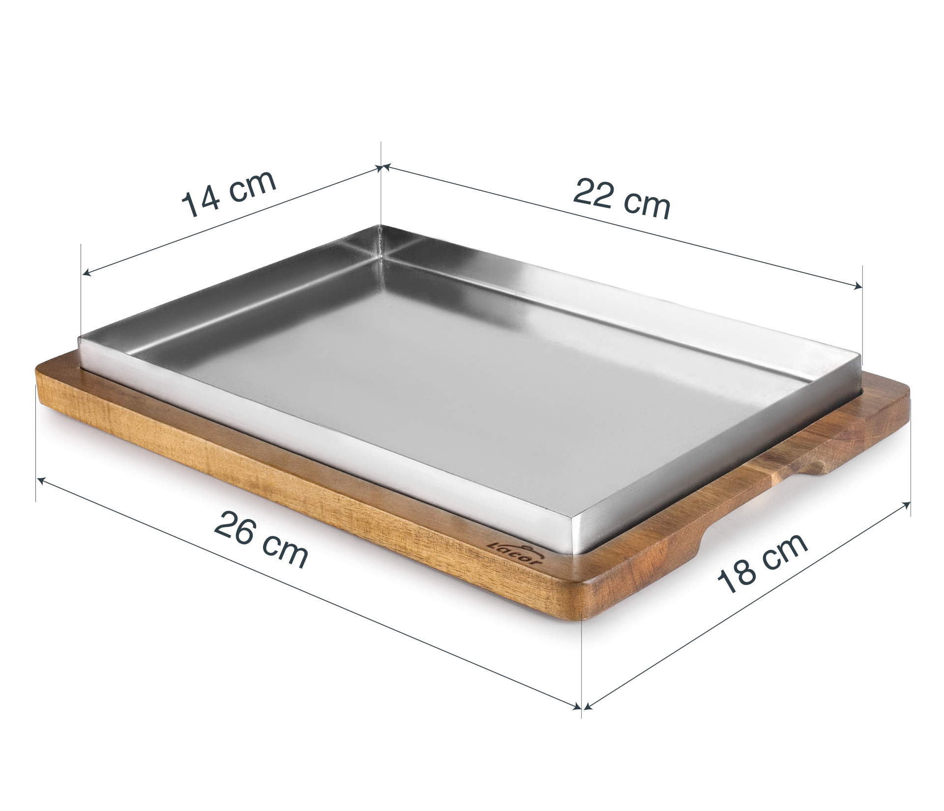 • Compuesta por una bandeja de acero inoxidable de gran calidad y base de madera de acacia.