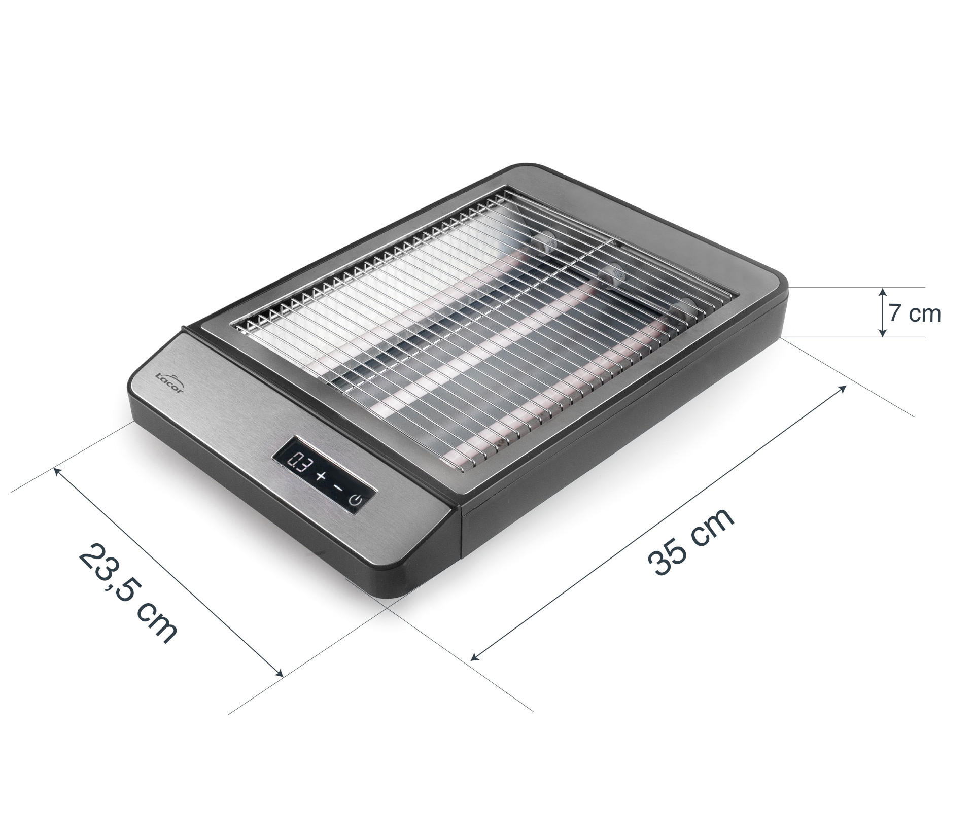 • Amplia superficie de tostado de 24x20 cm. Diseño compacto y práctico.